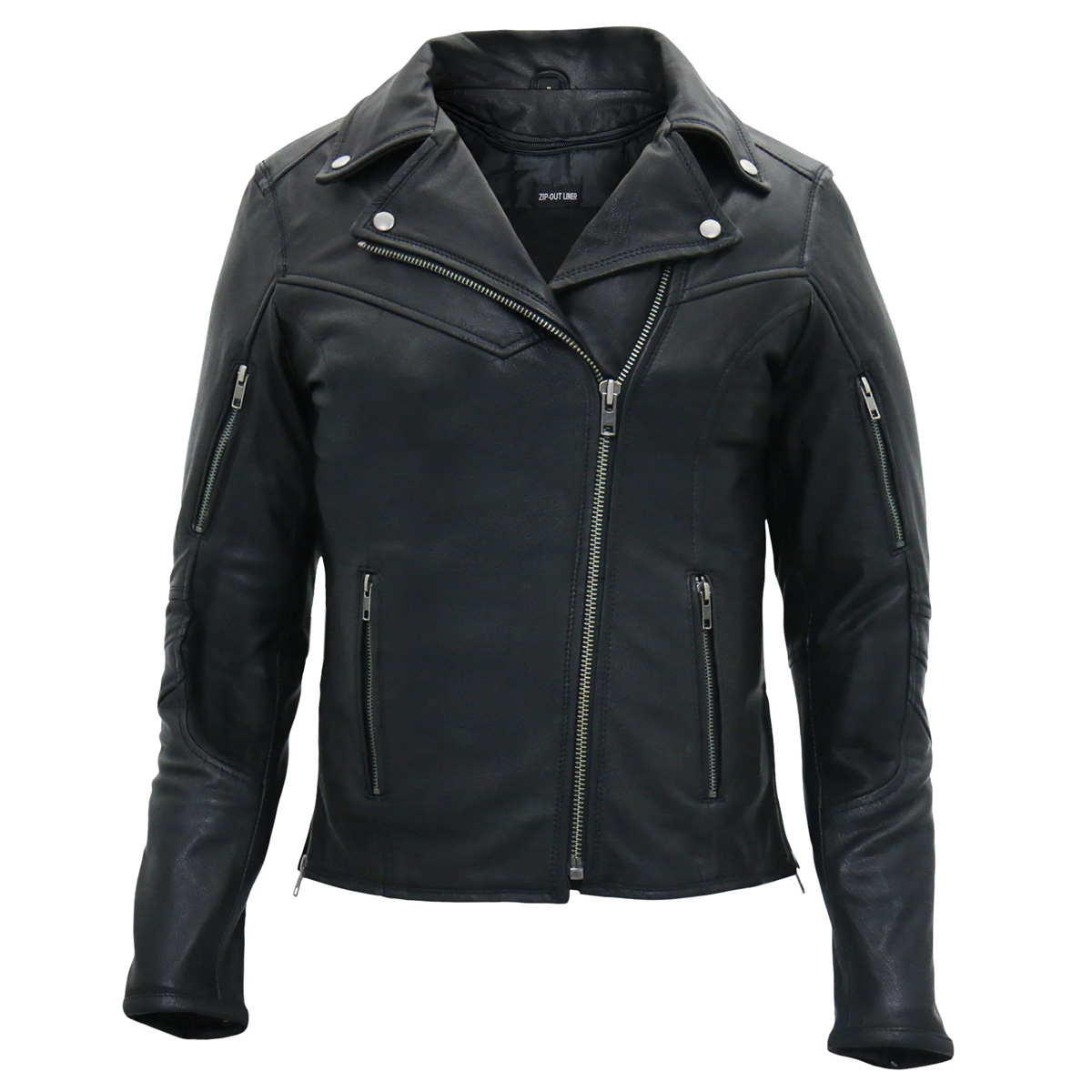 Made from Premium Cowhide Leather.Zip Out Quilted Lining.Fold Down Snap Collar.Antique Silver YKK ZippersAntique Silver Snaps.Extra Comfort Zippered Sides.Two Inside Carry Conceal Pockets.Zipper Cuffs.