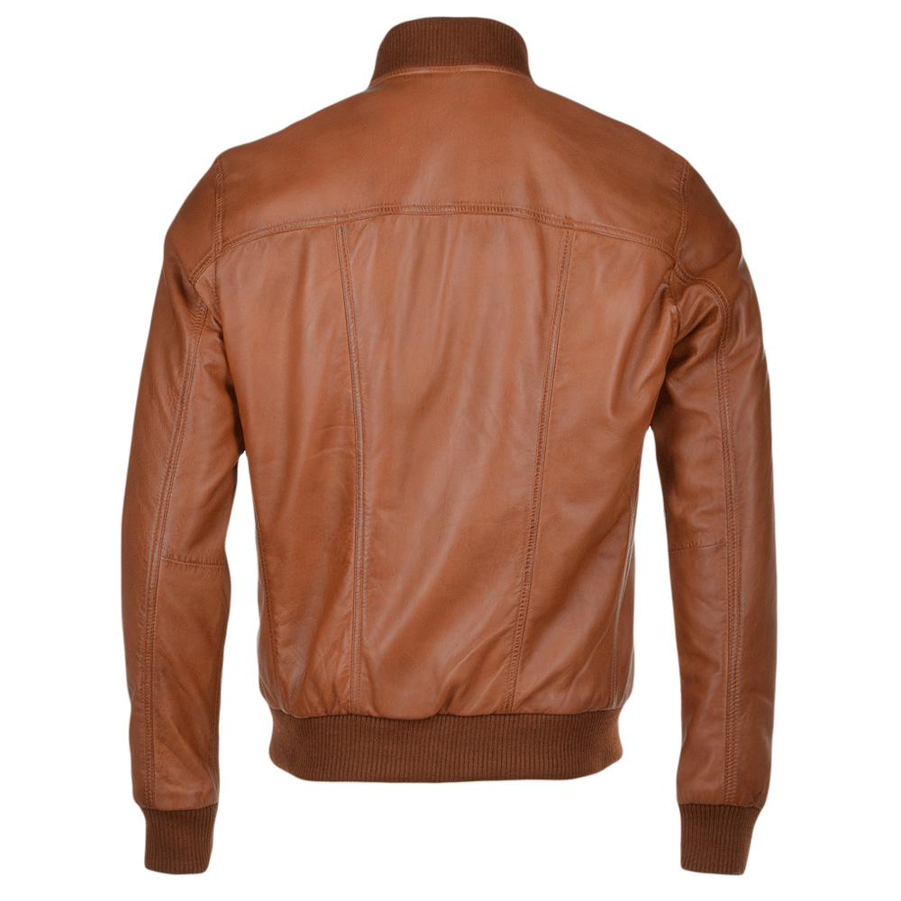 100% Genuine Leather.Regular fit.Ribbed material trims.Zip fastening closure.Two side pockets.Two internal pockets.Fully lined.
