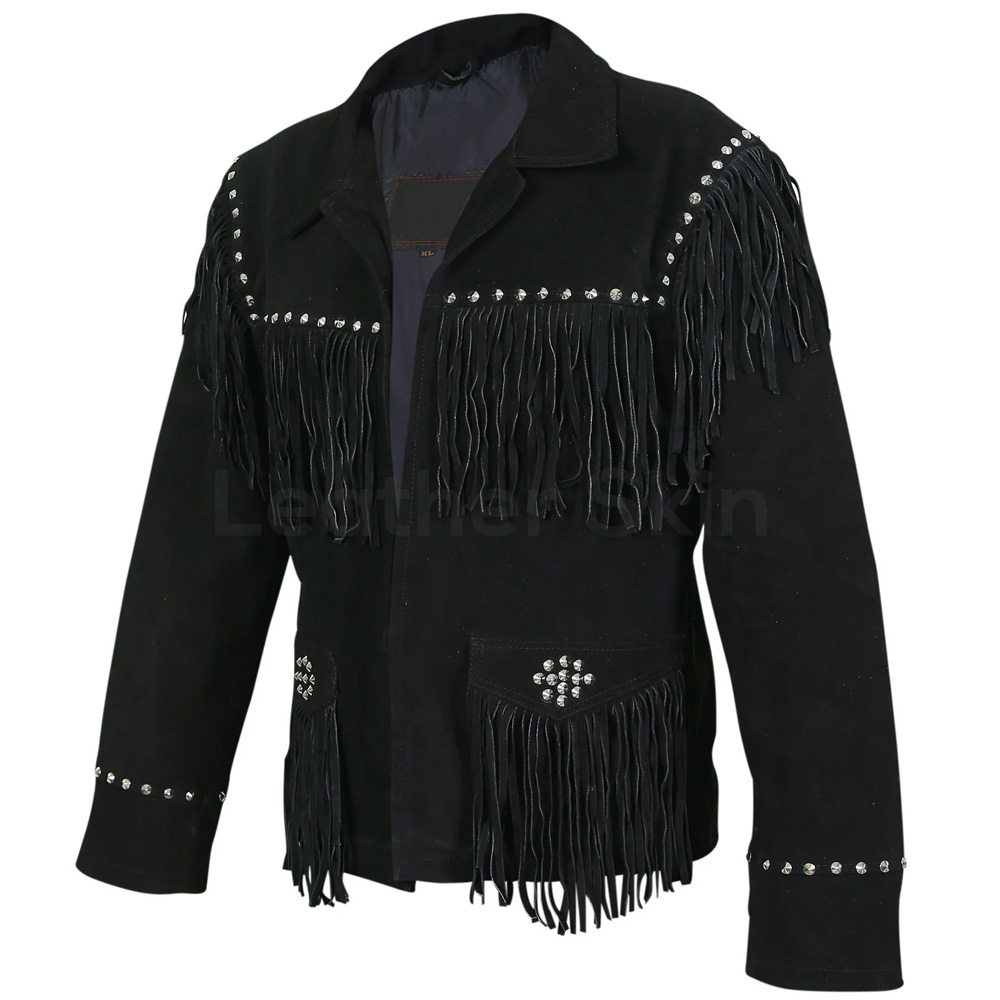 Made from high-quality suede leather.Western cowboy style fringes along the chest & front pocketsPremium stitching.Classic western jacket.Plain black lining.