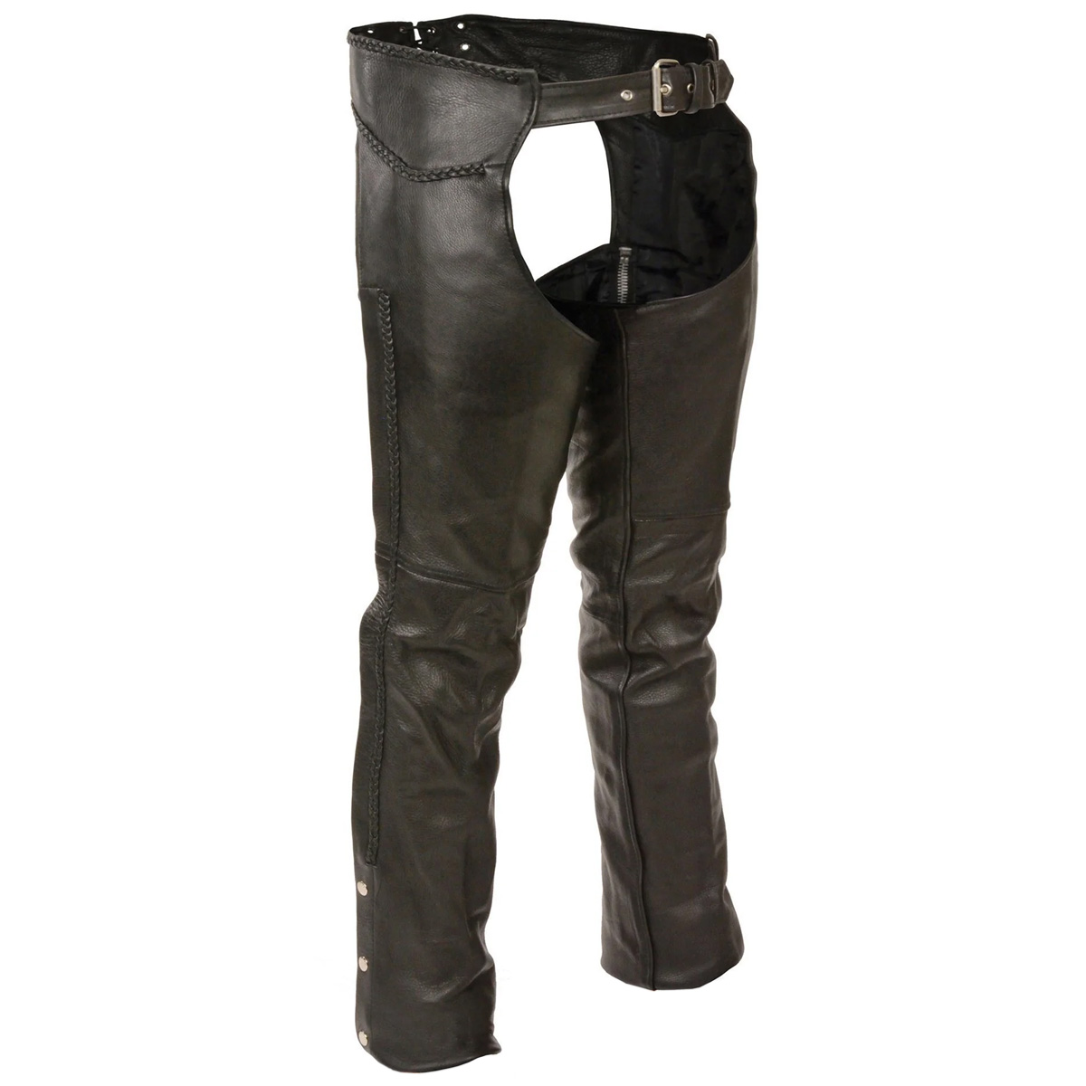Made of Cowhide LeatherBraiding Detail on Front, Back and LegBuilt in Adjustable Front BeltAdjustable Back Lace for an Optimal FitSide Zipper Entry with Lower Snap Button ClosureThe Inside is Lined to the Knee Area